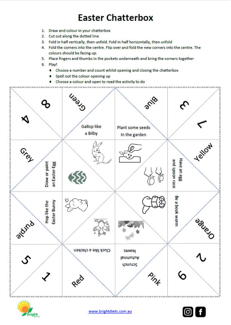 - an Easter Chatterbox for gifting instead of chocolate- great for school and the scavenger hunt