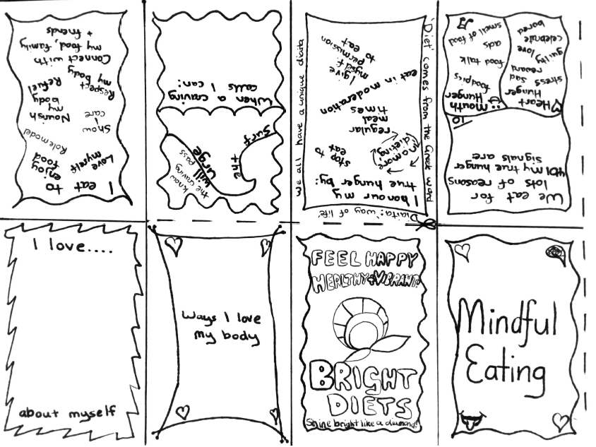 Colour, draw and fold our Nutritious Foods, Mindful Eating and Halloween Zinnie. Then create your very own collaborative creative zinnie with a blank tempate. We would love you to share your creation on our Bright Bods Facebook Group or your socials.